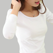 气质纯棉圆领秋装长袖T恤女修身纯色经典简约甜美户外休闲打底衫