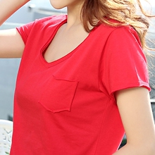 气质V领纯棉宽松女半袖百搭打底简约大码纯白色大红色夏季短袖T恤