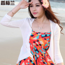 春夏针织衫女开衫薄连衣裙外搭蕾丝雪纺拼接空调衫长袖披肩外套
