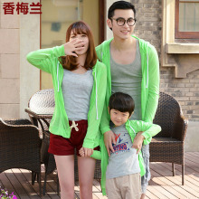 夏连帽拉链防晒衣长袖休闲宽松女外套情侣亲子空调服轻薄沙滩开衫