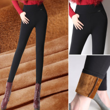 提臀黄金绒女裤冬外穿松紧高腰加绒加厚大码胖妹妹小脚铅笔打底裤