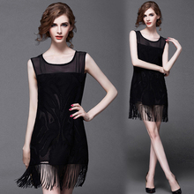 欧美大牌无袖连衣裙女夏季2017新款时尚性感显瘦短裙蕾丝流苏裙子