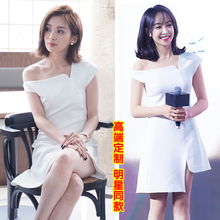 2017明星同款露肩修身性感包臀连衣裙女夏季气质小白裙宴会晚礼服
