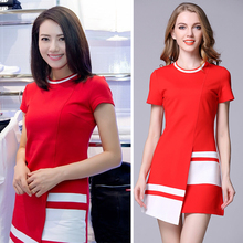 高圆圆明星同款短袖连衣裙夏2017名媛气质修身拼接时尚针织短裙子