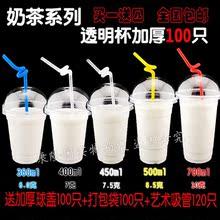 康隆园一次性奶茶杯 透明杯 塑料杯 果汁杯 送吸管球盖打包袋包邮