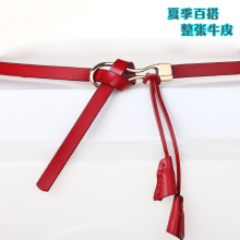 牛皮打结细腰带女装饰配连衣裙子时尚韩版百搭真皮细款休闲皮带女