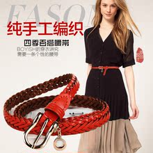 编织女士皮带时尚休闲百搭腰带女真皮细装饰连衣裙简约民族风裤带