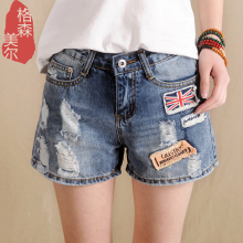 格森美尔破洞牛仔短裤女夏大码宽松 a字阔腿短裤热裤女百搭牛仔裤