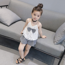 女宝宝套装 小童夏季女童新款时尚 吊带衣+格子短裤两件套装