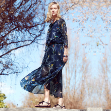 演出季2017春秋装两件套印花雪纺连衣裙女七分袖波西米亚度假长裙