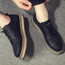 春季布洛克雕花男鞋真皮复古厚底男士内增高休闲皮鞋韩版板鞋潮鞋