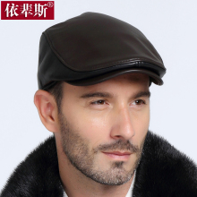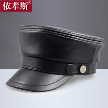 真皮帽子男士冬天冬季休闲户外牛皮平顶八角帽军帽鸭舌棉帽韩版潮