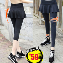 韩国假两件裤裙紧身显瘦瑜伽长裤健身房运动跑步服女速干裤子大码