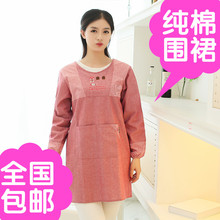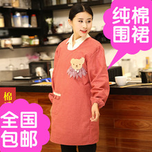 纯棉长袖围裙韩版时尚可爱围裙长袖纯棉做饭成人罩衣女士反穿衣厚
