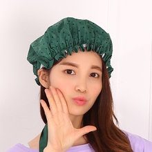 新款韩版高档做饭防油帽子加大加厚双层防水纯色点子成人洗头浴帽