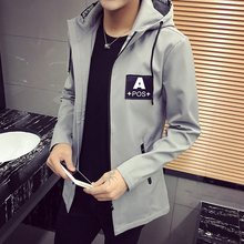 青少年风衣男外套短款连帽2017新款春秋季修身潮流纯棉外衣男学生