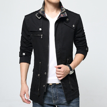 立领男风衣中长款纯色工装外套秋季时尚青年外衣修身型英伦褂子薄