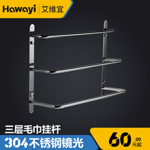艾维宜304不锈钢镜光三杆浴巾架 浴室毛巾杆 卫生间置物架 挂件