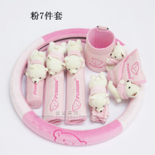 小熊汽车内饰装饰用品后视镜手刹档位档把安全带护肩套车饰品套装