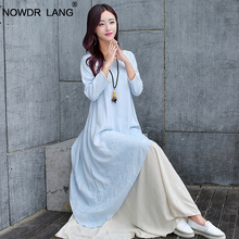 文艺连衣裙长款过膝2017春季新款民族风宽松裙子女时尚复古女装裙