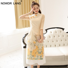 文艺范复古连衣裙2017夏季新款女装气质简约旗袍裙修身显瘦裙子女