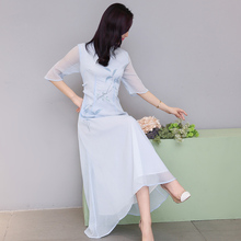 2017新休闲套装女连衣裙复古立领旗袍长裙阔腿裤两件套时尚绣花裙