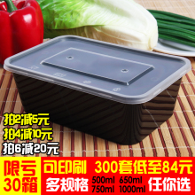 长方形1000ml一次性餐盒黑色塑料饭盒快餐打包便当盒带盖批发包邮