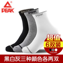 匹克运动袜中帮袜透气吸汗棉袜男士袜子跑步袜篮球鞋运动袜6双装