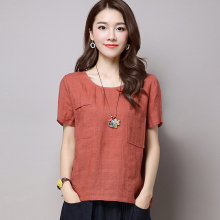 亚棉麻白色t恤女装短袖夏季上衣2017新款宽松短款韩版百搭打底衫