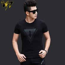 2017新款春夏装短袖t恤男V领修身大码打底衫紧身印花体恤潮男衣服