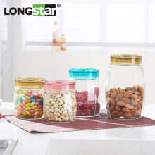 龙士达大号圆形玻璃密封罐小号装干果零食罐子彩色透明厨房储存罐
