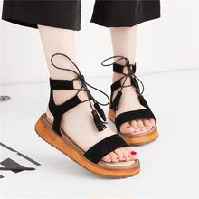 森女凉鞋女夏平底2017新款韩版百搭学生平跟交叉绑带流苏罗马女鞋