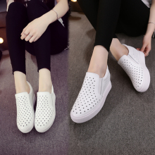 春夏季洞洞镂空懒人皮休闲运动坡跟厚底松糕乐福内增高小白鞋女潮