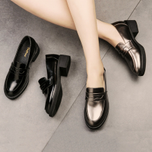 涉趣春季女鞋英伦风小皮鞋女布洛克单鞋漆皮平底鞋中跟休闲鞋新款