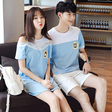 情侣装夏装2017新款连衣裙套装夏季半袖上衣短袖T恤男韩版女裙潮