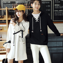 2017新款情侣装春装韩版卫衣连帽宽松学生潮女连衣裙个性绑带外套
