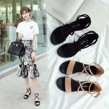 凉鞋女夏2017新款交叉绑带复古罗马鞋一字扣百搭学生平底孕妇凉鞋