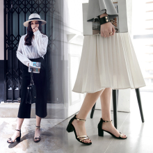 凉鞋女夏2017新款学生鞋女中跟高跟鞋露趾粗跟方头一字扣罗马女鞋