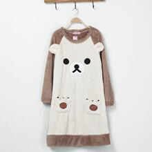 小清新卡通加厚珊瑚绒睡裙女秋冬季长袖可爱少女法兰绒家居裙清仓