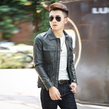 春季男士机车皮衣复古压邹皮外套男韩版修身短款皮夹克男装潮青年
