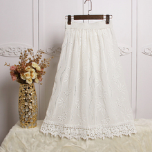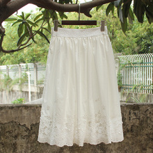 绣花纯棉半身裙中长款 夏天新款森女文艺小清新刺绣棉布小白裙