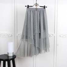春夏2017新款灰色波点不规则纱裙半身裙 中长款蛋糕网纱蓬蓬裙