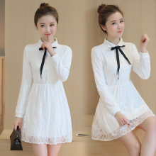 秋冬季韩版小清新日系甜美蕾丝长袖连衣裙女可爱学生打底裙子春秋