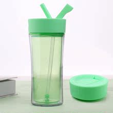cica正品水杯塑料带盖 双层透明杯子带盖 大容量果汁杯成人吸管杯