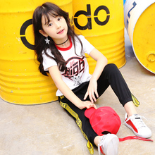女童韩版套装2017夏新款中大儿童短袖T恤两件套女孩休闲跳街舞服