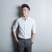 Y.F.M 欧美简约弹性特制面料纯色商务中袖衬衣 暗扣五分袖衬衫男