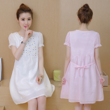 夏季2017孕妇装夏装新款中长款短袖孕妇连衣裙时尚宽松棉麻孕妇裙