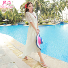 燊杰 新款波西米亚长裙沙滩裙夏季海边度假雪纺蕾丝花边连衣裙子