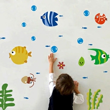 海底泡泡鱼墙贴 幼儿园可移除卡通墙贴纸 卧室儿童房间装饰