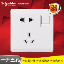施耐德开关插座睿意白色墙壁一开五孔插座带开关电源插座面板